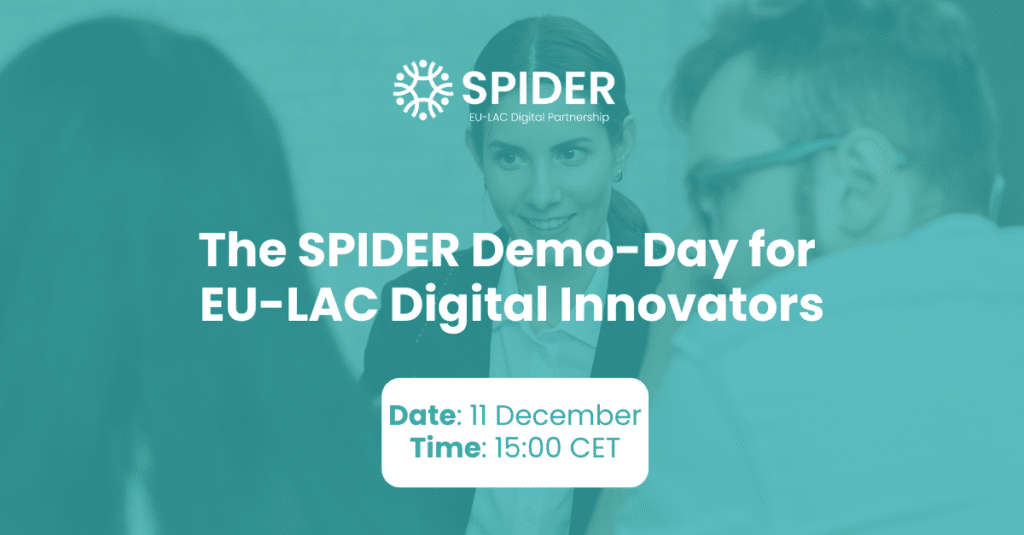 The SPIDER project is organizing an online demo-day to showcase some of the top innovators selected under its Call for Ideas. Register to join us online on 11 December, 15:00 to 16:30 CET and discover promising, early-stage digital technologies from the EU and LAC regions.